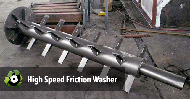 At the core of the high friction washer lies a long, fast-spinning shaft mounted with many tilted paddles that rotates at nearly 1,000 RPMs. As the PP / PE film enters this machine, the plastic film is mixed at high speeds within the washer where friction between each piece of PP / PE film helps scrub off dirt and debris. At the same time, the friction also causes the paper and cardboard to break down into tiny fibers.